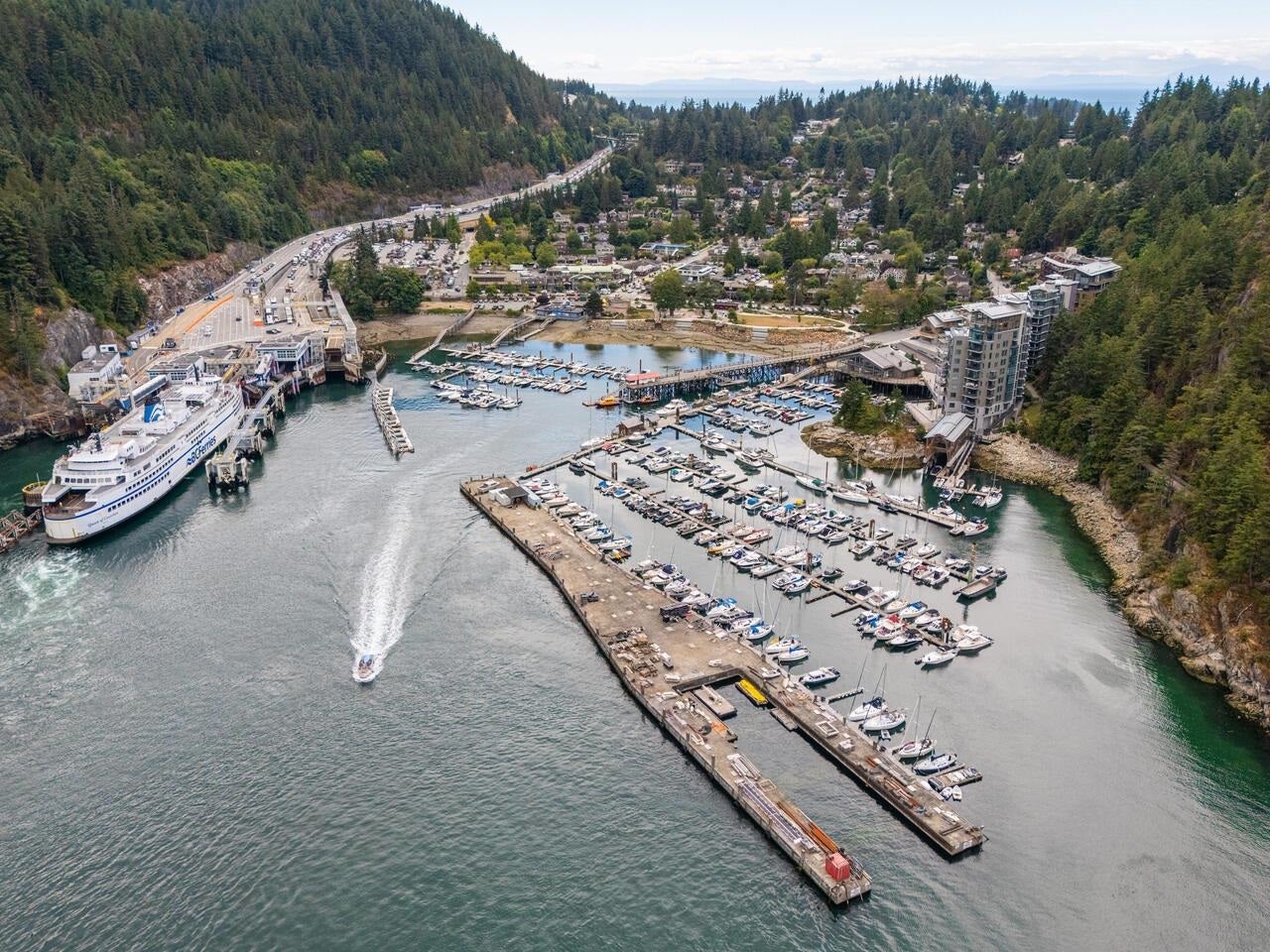 Discover waterfront luxury in this 2 bedroom, 2 bath suite in the iconic Sanctuary located on the edge of Horseshoe Bay's harbour. 10' ceilings, wide plank wood flooring, quartz & granite counters, teak vanities, Kohler fixtures and a spectacular travertine stone fireplace are just some of the beautiful finishes in this Paul Merrick designed space. This is a great floorplan with Eastern exposure & spacious balcony with access from both living room & primary bedroom. Amenities include 24hr concierge, a state-of-the-art gym, paddleboards, kayaks, a breathtaking 'boathouse' and use of a 24' Criss-Craft boat complete with captain! A rare gem in West Vancouver’s picturesque coastal community ideally located for the skier, boater, golfer or those just seeking peace & quiet. COURT ORDERED SALE.