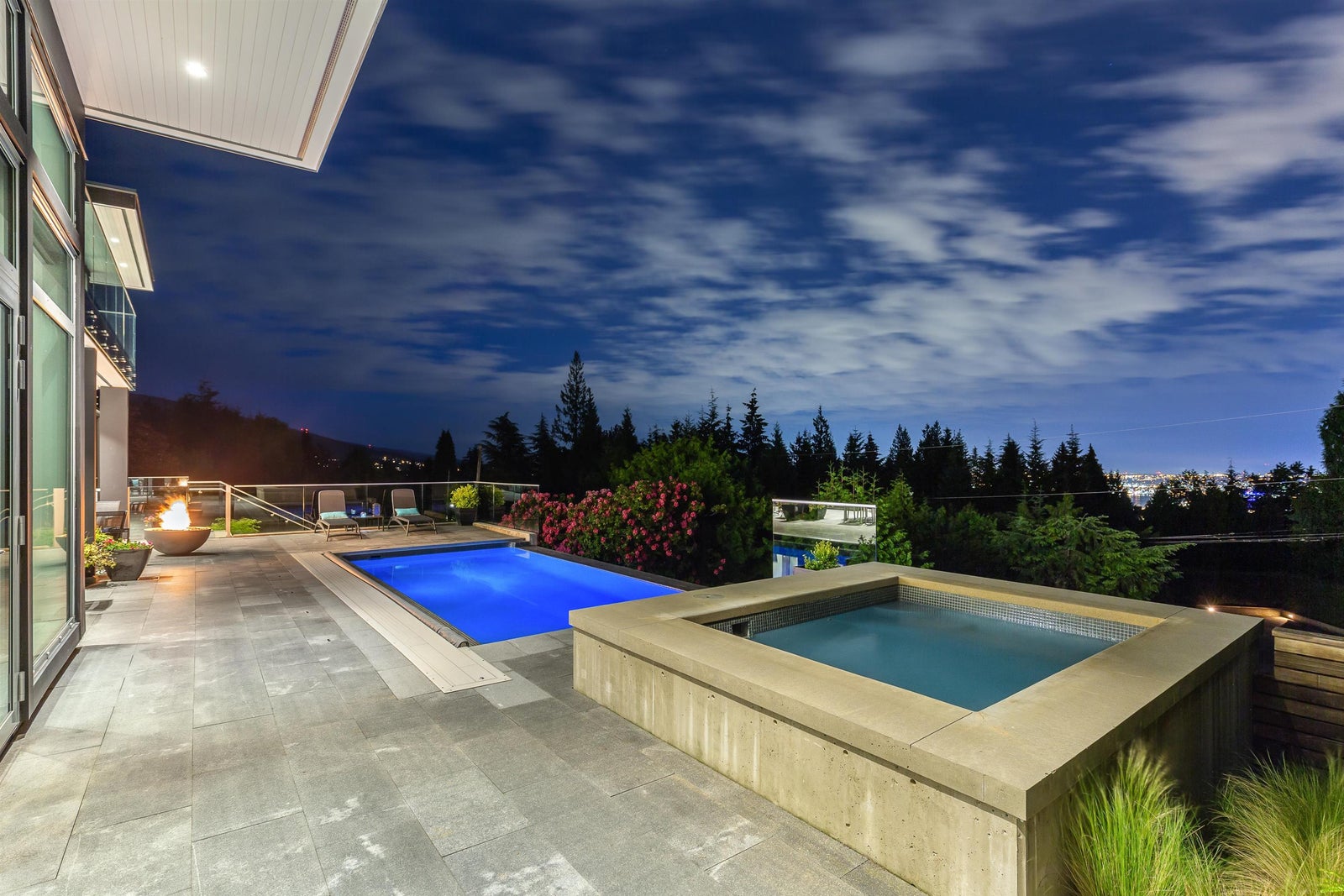 PERCHED UP on one of the nicest streets in the British Properties, this STUNNING CONTEMPORARY ESTATE leaves me SPEECHLESS. With car area in the front for 8 cars and 2 separate double garages, 1065 Groveland is 4 years old but feels like brand new! The main floor alone is almost 3000 square feet and the quality itself is felt as you enter the front door! AMAZING KITCHEN open concept as well as separate dining room and second kitchen makes this an ENTERTAINERS DREAM. Indoor and outdoor living that leads to the front deck with incredible INFINITY EDGE POOL. On OVER A 1/2 ACRE of private/flat land 8,800 sq.ft. of house (including both garages), 7,790 sq.ft. without garages, 6 luxurious bedrooms, 8 baths, huge media room and CITY VIEW POOL with SOUTHERN SUN EXPOSURE.